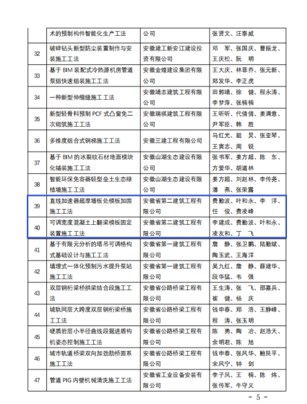 近日,安徽省住房與城鄉(xiāng)建設(shè)廳發(fā)布了“安徽省 2022 年度省級工法”,安徽二建公司申報的《直線加速器超厚墻板處模板加固施工工法》、《可調(diào)寬度混凝土上翻梁模板固定裝置施工工法》榜上有名。