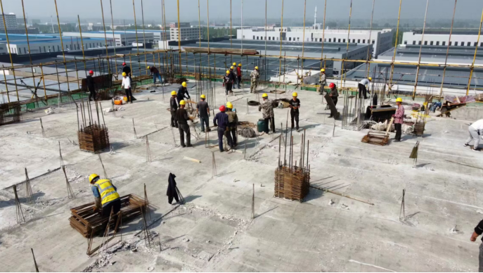 安徽建工二建第三分公司長豐新能源汽車配套產(chǎn)業(yè)園項(xiàng)目總用地面積約200畝,總建筑面積為16萬平方米,其中地上建筑面積為15.7萬平方米,地下建筑面積約為3000平方米,施工內(nèi)容主要包括7棟工業(yè)化廠房及一棟綜合樓,室外配套道路、給排水、供配電、景觀綠化等基礎(chǔ)設(shè)施工程等。目前項(xiàng)目1-7#廠房進(jìn)入收尾階段,確保在4月底完成單體全部工程量,具備單體竣工驗(yàn)收要求;綜合樓八層主體結(jié)構(gòu)搶工階段,確保5月中旬結(jié)構(gòu)封頂。
