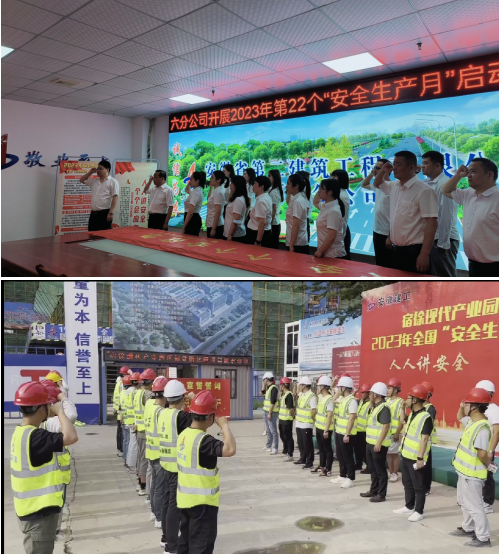 6月1日,第六分公司組織在建項(xiàng)目部舉行“安全生產(chǎn)月”活動啟動儀式。通過安全宣誓、安全簽名、懸掛條幅、展牌、觀看安全警示片等形式,營造“安全生產(chǎn)月”活動氛圍。