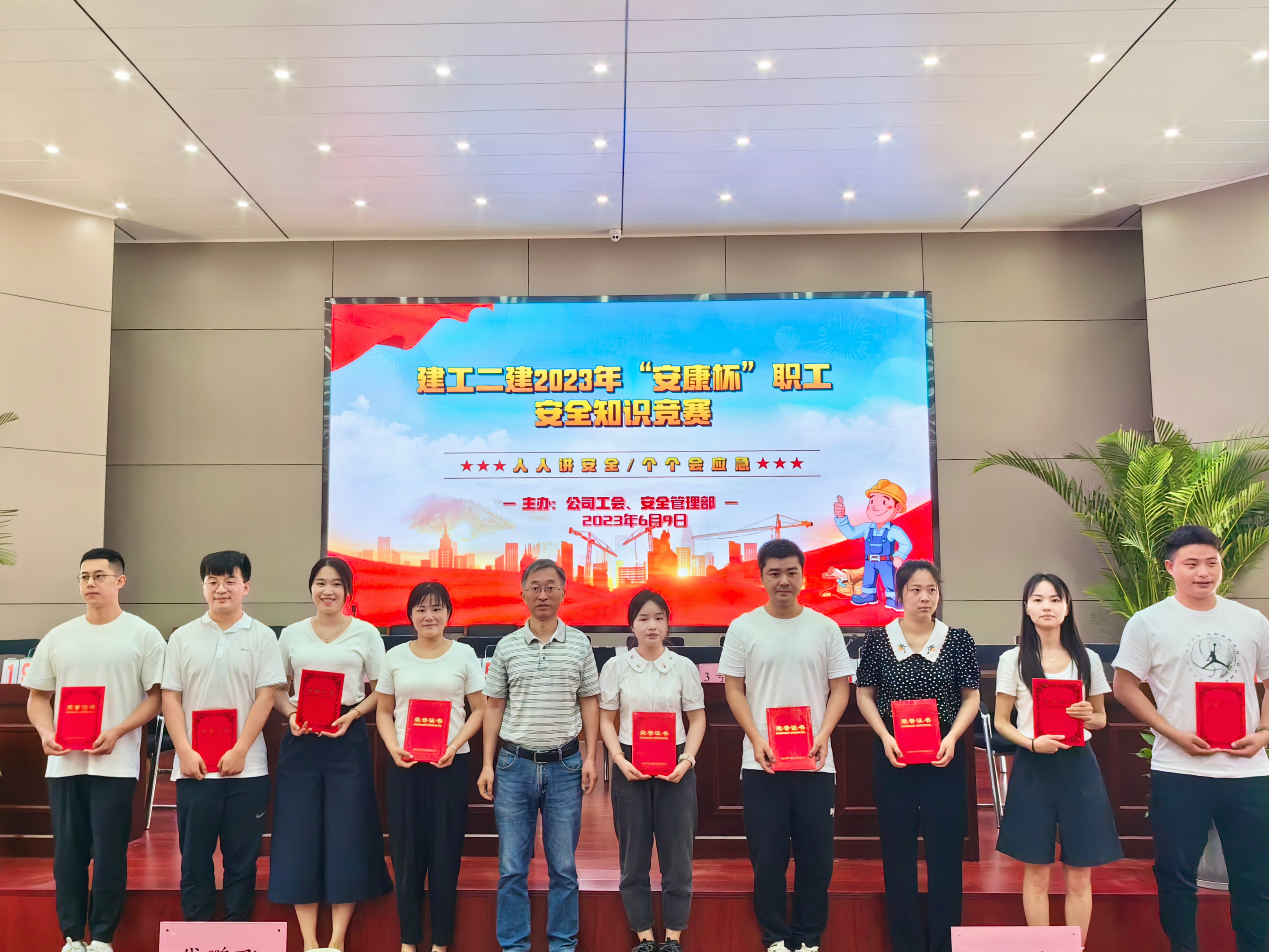 今年六月是第22個(gè)全國(guó)“安全生產(chǎn)月”,主題為“人人講安全,個(gè)個(gè)會(huì)應(yīng)急”。6月9日上午,公司工會(huì)牽頭,與安全管理部聯(lián)合舉辦了建工二建2023年“安康杯”職工安全生產(chǎn)知識(shí)競(jìng)賽活動(dòng)。安全知識(shí)競(jìng)賽的開(kāi)展,旨在通過(guò)以賽促學(xué)、以學(xué)促用,大力弘揚(yáng)“生命至上、安全為天”的安全理念,加強(qiáng)安全知識(shí)宣傳教育,切實(shí)增強(qiáng)廣大職工安全生產(chǎn)意識(shí)和安全管理知識(shí)水平。公司黨委副書記、工會(huì)主席王軍,副總經(jīng)理代鵬飛出席活動(dòng)。