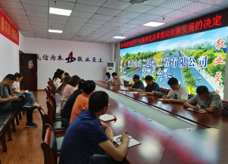 第五公司機(jī)關(guān)和項目黨支部傳達(dá)學(xué)習(xí)安徽建工集團(tuán)全面深化改革推動創(chuàng)新發(fā)展動員部署暨主題教育黨課報告會精神。會議要求,一要切實提高政治站位,充分認(rèn)識深化改革的緊迫性和必要性,全面貫徹落實建工控股黨委的決策部署;二要以全面深化改革為契機(jī),找準(zhǔn)定位、對標(biāo)對表,立足崗位、擔(dān)當(dāng)作為,錨定年度各項目標(biāo)任務(wù)抓落實,全力沖刺促發(fā)展;三要攻堅克難、砥礪奮進(jìn),緊密結(jié)合實際,進(jìn)一步優(yōu)化組織架構(gòu),全力開拓市場,降低管理成本,夯實項目管理,助力公司開創(chuàng)高質(zhì)量發(fā)展新局面。