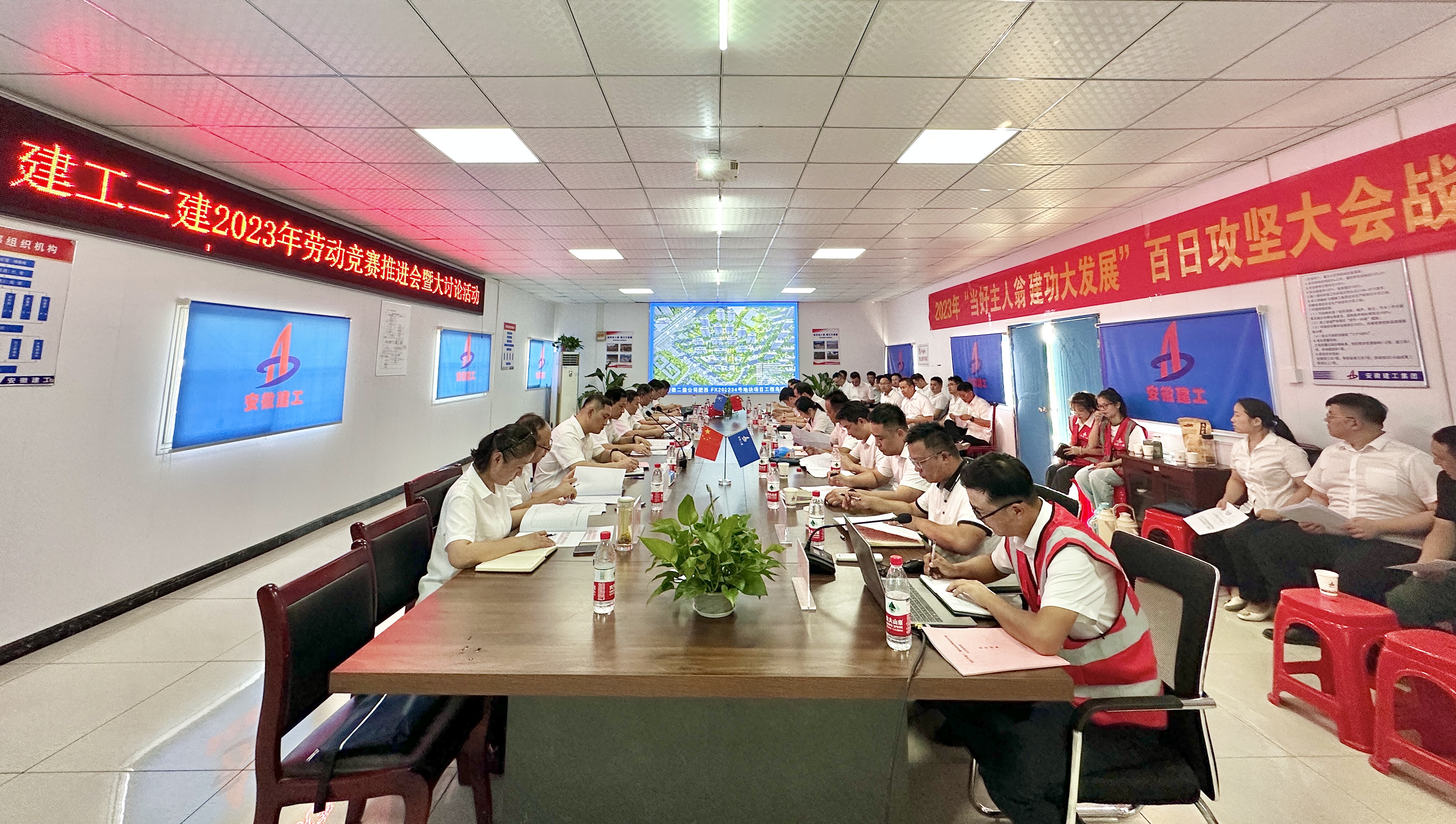 9月18日下午,建工二建在肥西FX202234#地塊項(xiàng)目召開2023年勞動(dòng)競(jìng)賽推進(jìn)會(huì)暨開展大討論活動(dòng)。公司黨委副書記、總經(jīng)理葛輝出席活動(dòng)并作總結(jié)講話,黨委副書記、工會(huì)主席王軍主持會(huì)議,副總經(jīng)理代鵬飛參加會(huì)議。