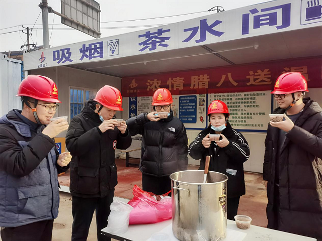 1月10日,安徽二建第三分公司銅陵水木清華園項目開展了“濃情臘八送溫暖”活動,為一線工友送上了節(jié)日的祝福和營養(yǎng)豐富、熱氣騰騰的臘八粥,感謝他們?yōu)楣こ探ㄔO(shè)的辛勤付出。