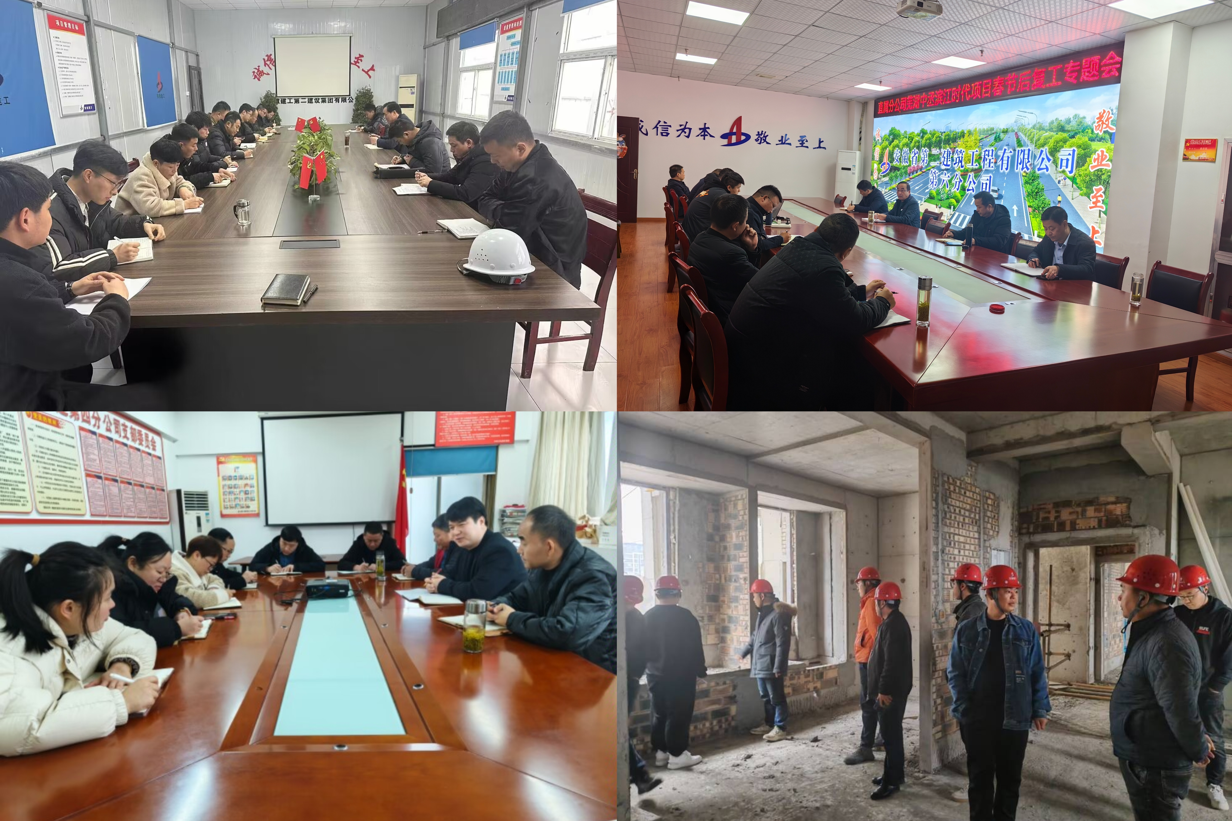 新春伊始,萬物復(fù)蘇。隨著春節(jié)假期的結(jié)束,建工二建所屬各單位迅速調(diào)整狀態(tài),對項目開展復(fù)工復(fù)產(chǎn)大檢查,召開年后復(fù)工復(fù)產(chǎn)工作會議,總結(jié)經(jīng)驗,舉一反三,凝聚合力,系統(tǒng)謀劃2024年度重點工作任務(wù),統(tǒng)籌抓好節(jié)后快速復(fù)工復(fù)產(chǎn)和安全生產(chǎn),助力公司加快生產(chǎn)經(jīng)營步伐,為實現(xiàn)一季度“開門紅”奠定基礎(chǔ),為實現(xiàn)全年目標任務(wù)開好頭、起好步。