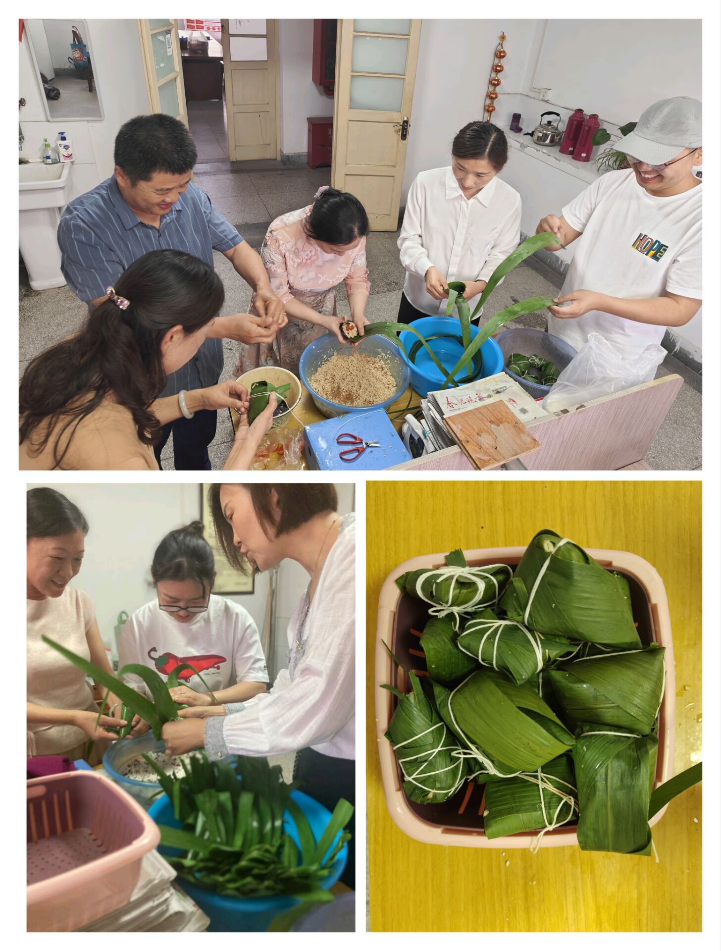 活動(dòng)現(xiàn)場(chǎng),粽葉、糯米、絲線等材料整齊擺放,同事們紛紛踴躍參與。大家圍坐在一起,相互交流包粽子的技巧和經(jīng)驗(yàn),現(xiàn)場(chǎng)充滿了歡聲笑語(yǔ)。無(wú)論是經(jīng)驗(yàn)豐富的“包粽達(dá)人”,還是初次嘗試的新手,都全心投入,努力讓自己手中的粽葉變成一個(gè)個(gè)飽滿可愛(ài)的粽子。