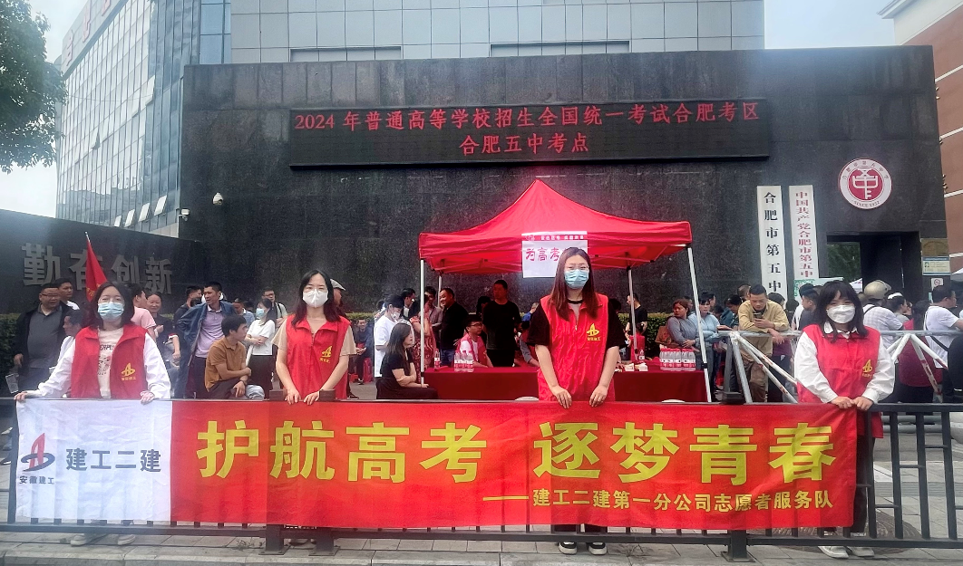 6月7日上午,建工二建團委分別在合肥市第五中學(長江校區(qū))、合肥三十八中(和平路校區(qū))高考考點組織團員青年開展愛心助力高考志愿服務活動。