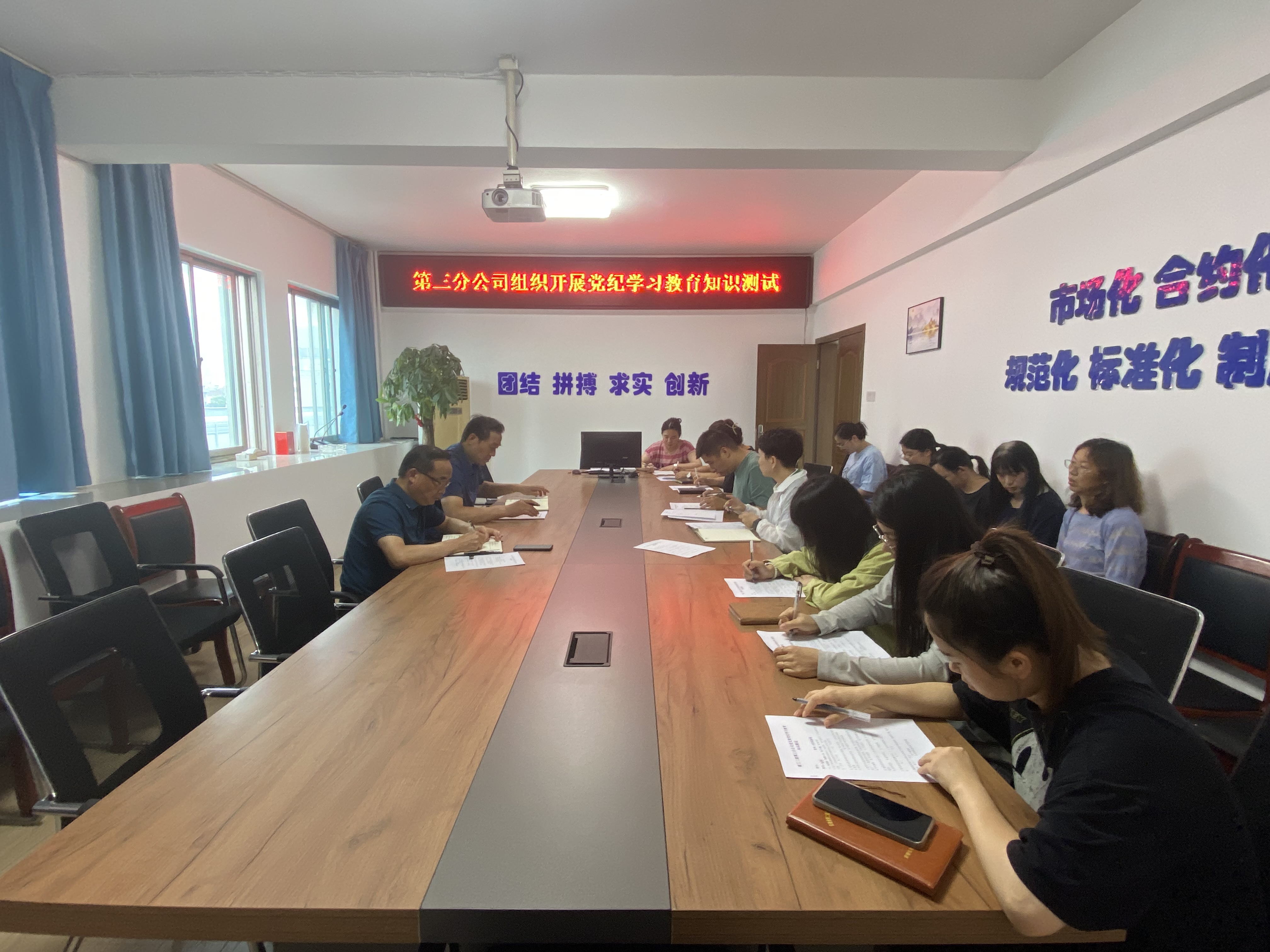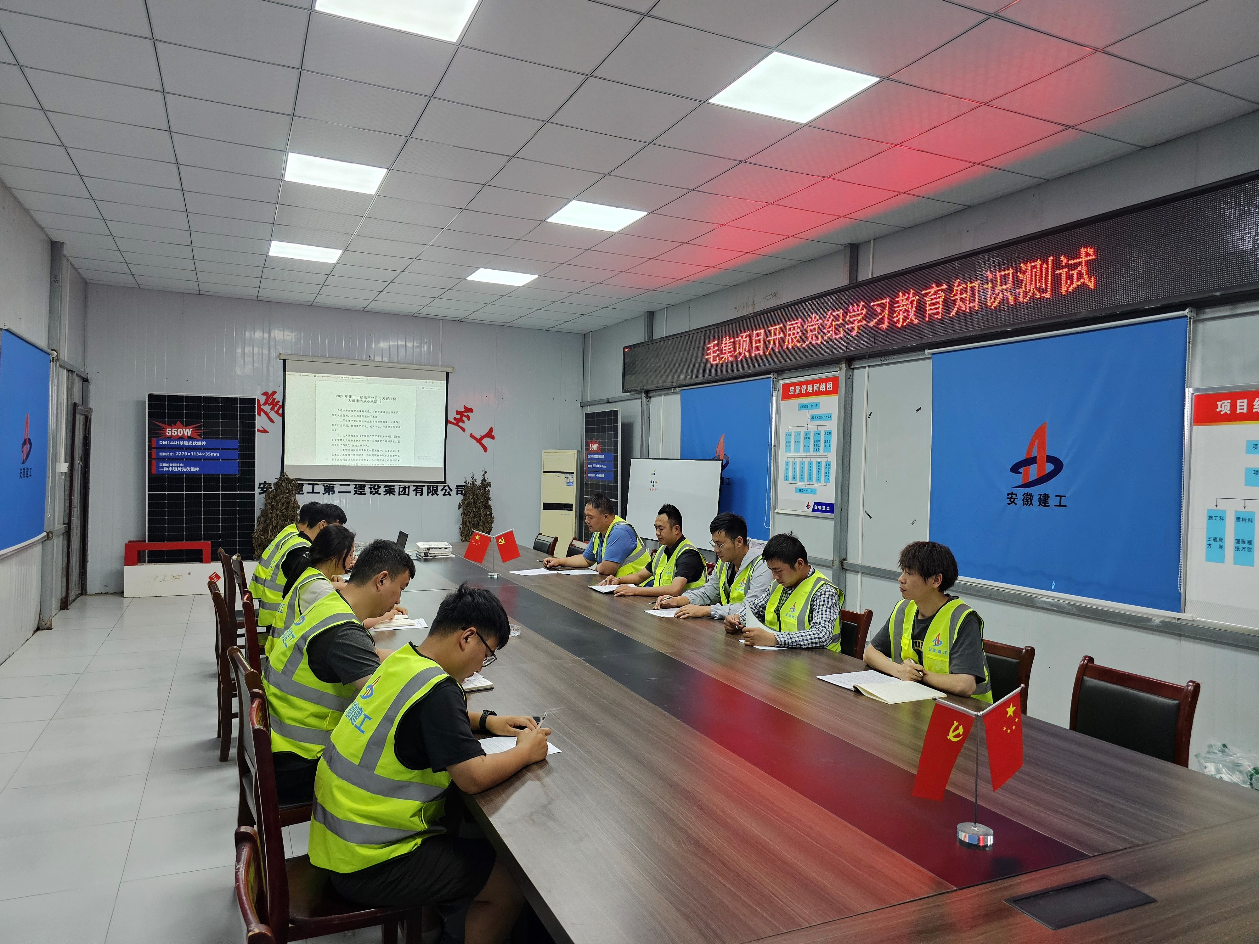 為持續(xù)加強黨紀學(xué)習(xí)教育,推動黨紀學(xué)習(xí)教育走深走實,6月26日上午,第三分公司黨支部召開黨紀學(xué)習(xí)教育學(xué)習(xí)會暨黨紀學(xué)習(xí)教育知識測試,機關(guān)全體人員參加會議,所屬項目部同步學(xué)習(xí)。