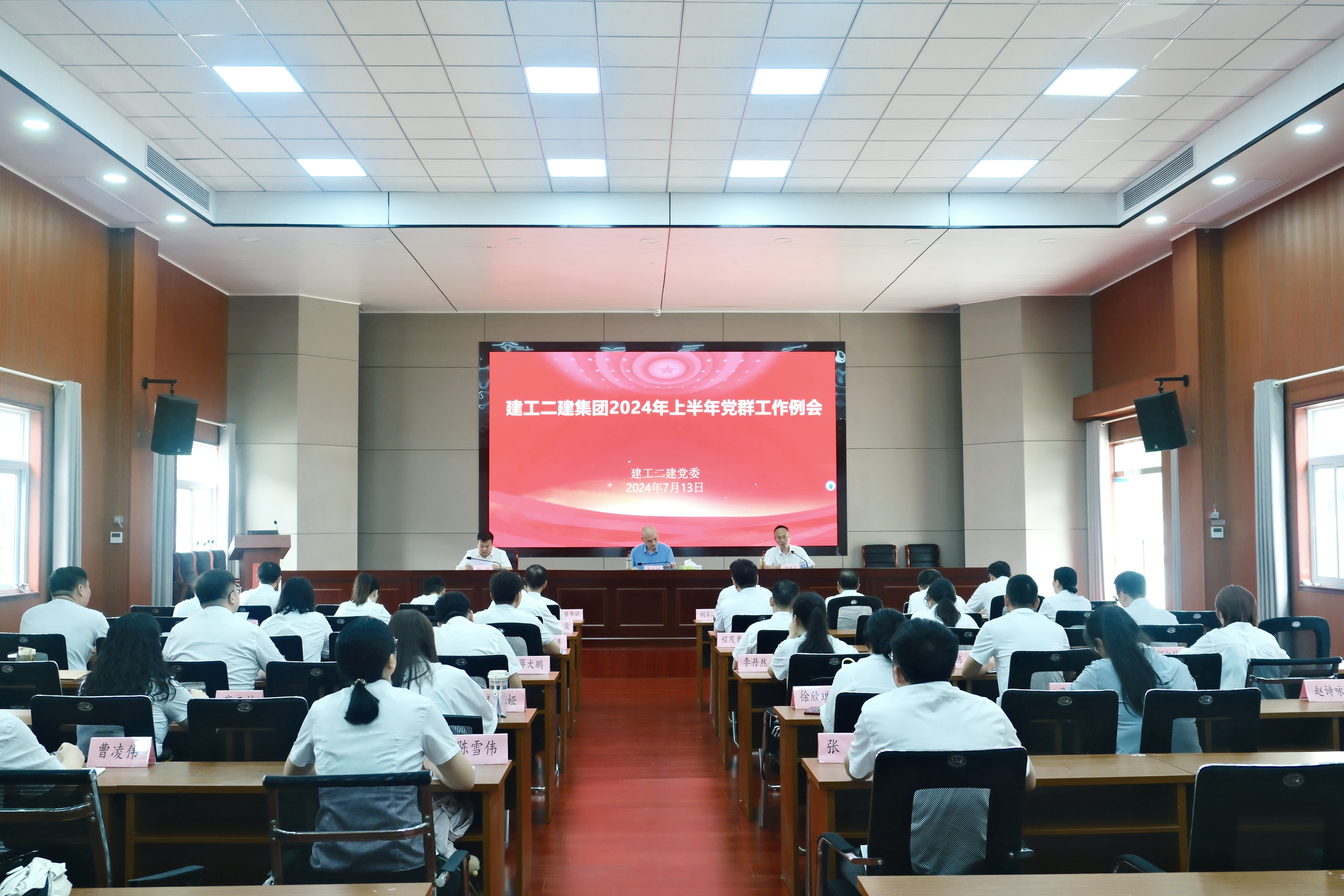 7月13日周六上午,建工二建在合肥召開上半年黨群工作例會,建工股份副總經理、公司黨委書記、董事長朱忠明出席會議并講話,公司領導周曉彧、荊帥參加會議,周曉彧主持會議。
