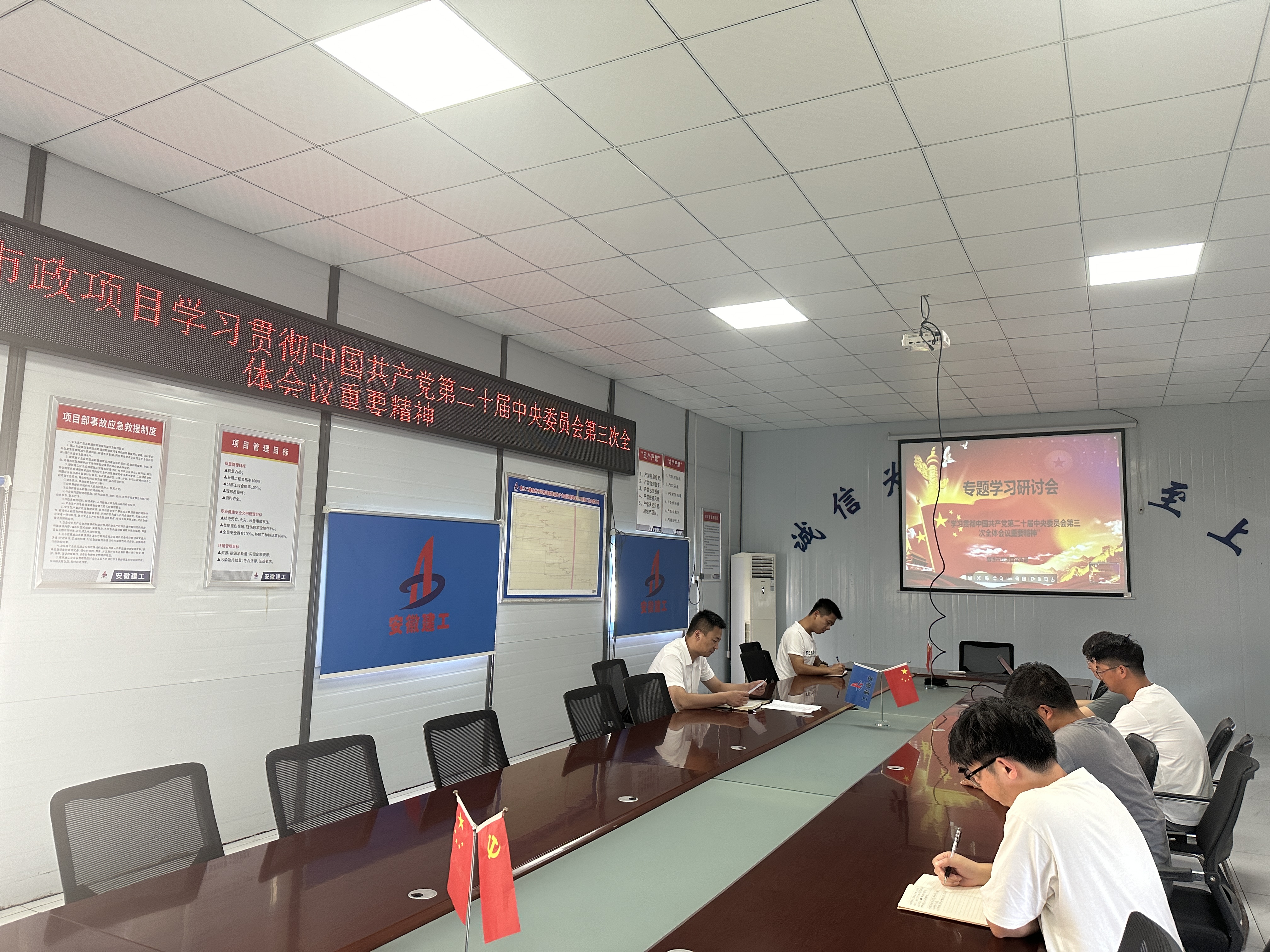學習宣傳貫徹黨的二十屆三中全會精神,是當前和今后一個時期的重大政治任務。宿徐現(xiàn)代產(chǎn)業(yè)園市政項目黨支部認真學習、廣泛討論、深入交流,學習《中國共產(chǎn)黨第二十屆中央委員會第三次全體會議公報》,觀看文件解讀資料,并通過主題黨日、主題團日、座談會等共同研讀《黨的二十屆三中全會<決定>學習輔導百問》,并結合自身工作情況分享學習心得和體會,持續(xù)掀起學習貫徹黨的二十屆三中全會精神熱潮,推動黨的二十屆三中全會精神入腦入心、落地生根。