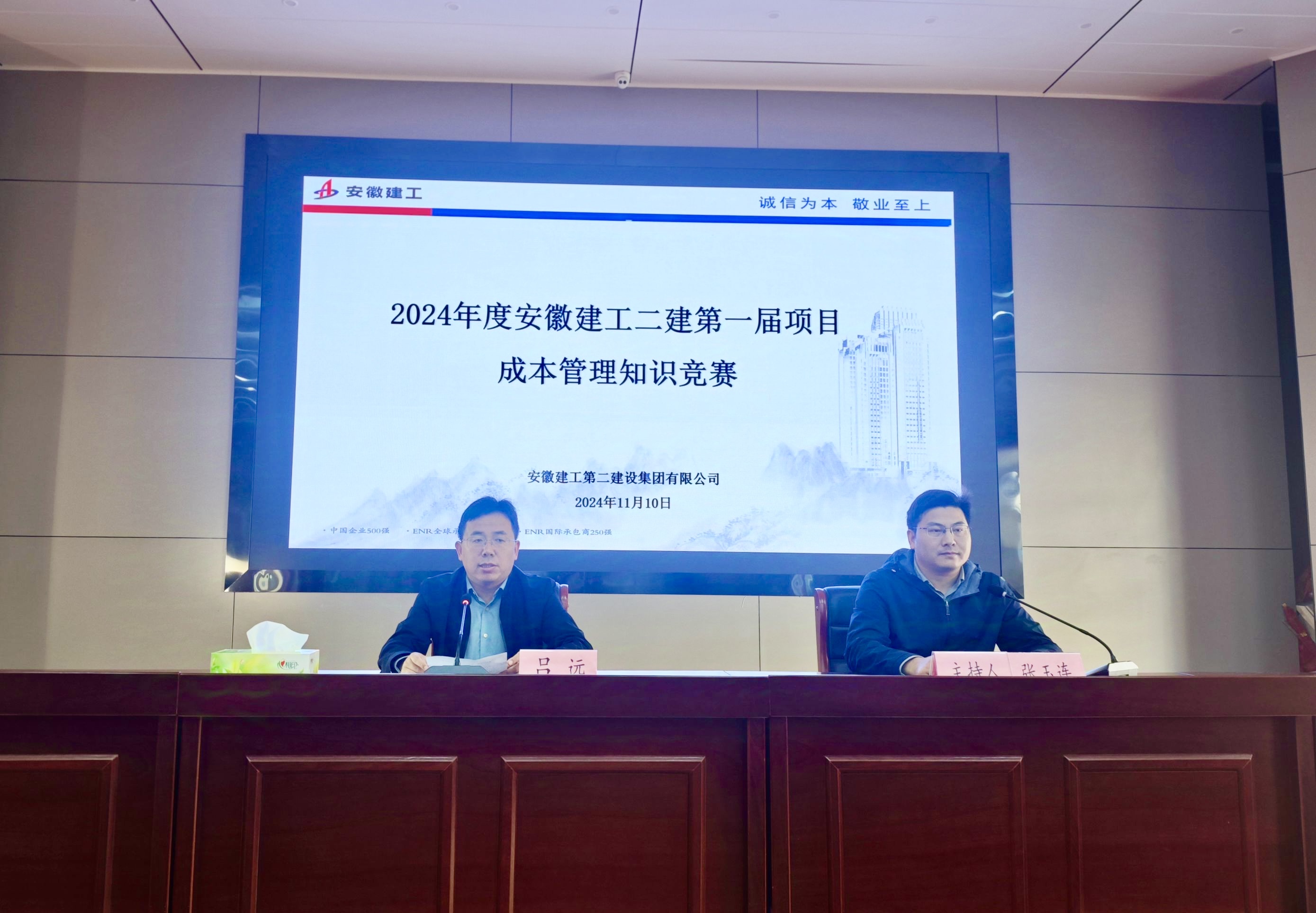 11 月 10 日,建工二建第一屆項目成本管理知識競賽成功舉辦,此次競賽,旨在提高職工的成本管理意識,為公司培養(yǎng)出一批技術過硬、理論扎實的成本管理人才。公司黨委委員、副總經理呂遠致開幕辭,并擔任比賽評委。