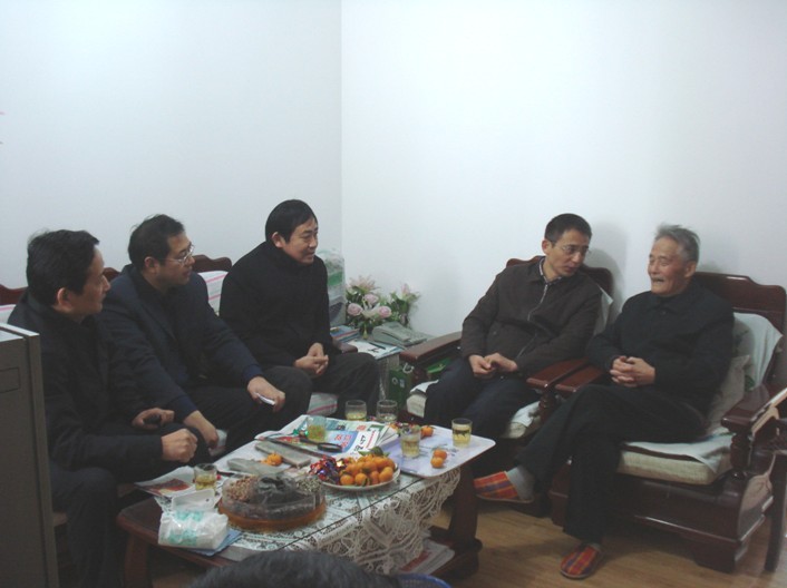 方無書記在公司老勞模王紹衡家與其親切交談