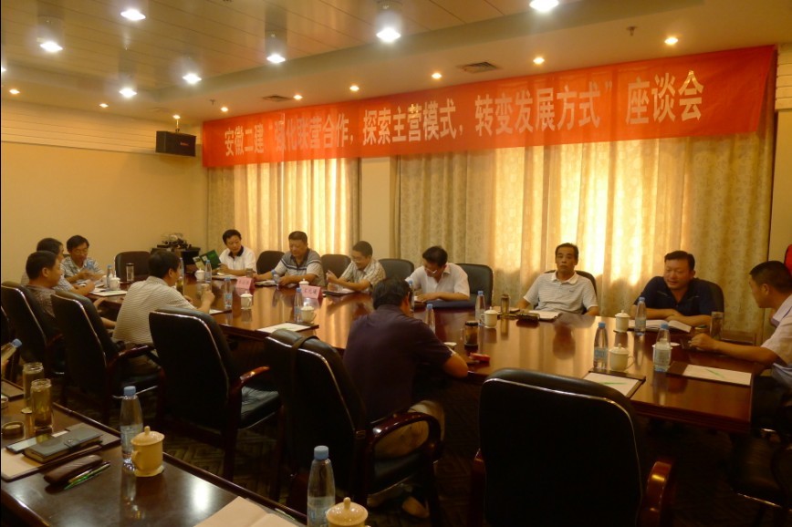 8月25日,安徽二建公司就“如何強(qiáng)化聯(lián)營合作管理,探索主營業(yè)務(wù)發(fā)展模式,轉(zhuǎn)變發(fā)展方式”在六安分公司召開了專題座談會(huì)。公司領(lǐng)導(dǎo)班子成員、總經(jīng)理助理、副總工程師、副總經(jīng)濟(jì)師等人員參加會(huì)議,集團(tuán)公司黨委委員、副總經(jīng)理王元曦親臨會(huì)議并做重要講話。