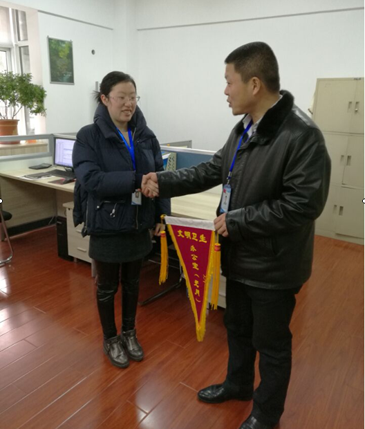 經(jīng)考評(píng)小組公正嚴(yán)謹(jǐn)?shù)臋z查評(píng)比,人力資源部、保衛(wèi)部獲得2017年元月份“文明衛(wèi)生辦公室”榮譽(yù)稱號(hào),黨委劉賢奇書記對(duì)獲得稱號(hào)的部門進(jìn)行了授旗,并寄語“再接再勵(lì)不斷提高”。