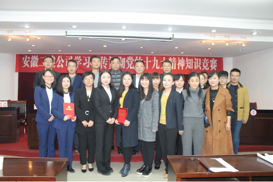 經(jīng)過三輪激烈的比賽,最終由一分公司第一代表隊獲得本次學習十九大精神知識競賽的一等獎;機關(guān)第二代表隊、后勤綜合服務部代表隊分獲二等獎;安裝公司代表隊、二分公司代表隊以及四分公司代表隊分獲三等獎。