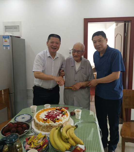 6月15日上午,公司黨委書記劉賢奇在工會(huì)主席李林、后勤綜合服務(wù)部支部書記、主管離休工作人員的陪同下,來到居住在高新區(qū)的離休老干部百歲老人李輝家中,送上生日壽桃蛋糕、慰問金和代表公司黨委對(duì)老人的生日祝福,祝愿老人壽比南山,福如東海。李輝,男,1919年7月1日出生,江蘇鹽城人,1945年4月1日參加新四軍抗日隊(duì)伍,1946年4月加入中國共產(chǎn)黨,出生入死63載,槍林彈雨,對(duì)黨忠誠,積極工作,勤勤懇懇,對(duì)企業(yè)發(fā)展建設(shè)作出應(yīng)有貢獻(xiàn)。如今老人精神矍鑠,生活安逸,心情愉悅。劉賢奇一邊與老人真摯地交談,了解老人的身體健康狀況、長壽秘籍;一邊與老人分享中國改革開放翻天覆的變化,安徽二建66載的風(fēng)雨歷程,目前企業(yè)已走向正常發(fā)展軌道,企業(yè)正處于轉(zhuǎn)型發(fā)展的關(guān)鍵時(shí)期,發(fā)展前景越來越好,希望老人事事順心,天天快樂,益壽延年。老人感謝劉書記和離休辦同志在自己百歲生日時(shí)給予的祝福,感謝公司黨委關(guān)心呵護(hù),表示要堅(jiān)定信念,永遠(yuǎn)聽黨話,跟黨走,祝愿企業(yè)再創(chuàng)新的輝煌。