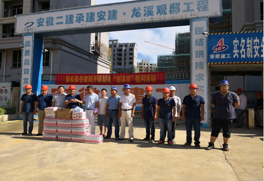 7月17日上午,驕陽似火,酷暑難耐。宿松縣住建局質(zhì)檢站黨組書記產(chǎn)海中等人來到安建·龍溪觀邸建筑工地開展夏日送清涼慰問活動(dòng),為高溫酷暑下奮戰(zhàn)在一線的建筑工人帶去關(guān)愛與問候。
