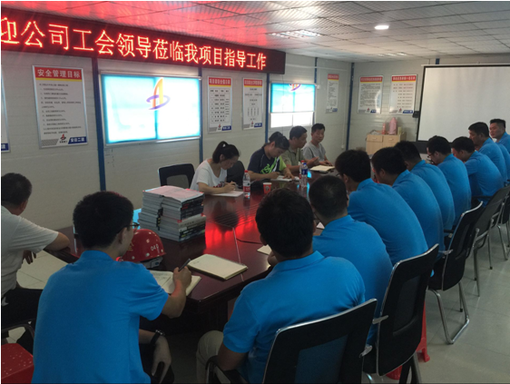 李主席一行到達(dá)施工現(xiàn)場(chǎng),參觀了工地,仔細(xì)詢問(wèn)了項(xiàng)目概況以及目前施工進(jìn)度、質(zhì)量、安全等方面情況,聽(tīng)取了項(xiàng)目工會(huì)主席創(chuàng)建“工人先鋒號(hào)”匯報(bào),對(duì)項(xiàng)目班子以“一流工作、一流服務(wù)、一流業(yè)績(jī)、一流團(tuán)隊(duì)”為目標(biāo)的創(chuàng)建活動(dòng)給予了肯定,鼓勵(lì)項(xiàng)目部繼續(xù)完善,爭(zhēng)創(chuàng)集團(tuán)“工人先鋒號(hào)”工程。