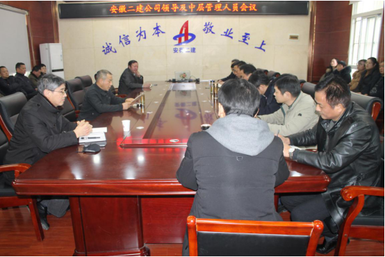 1月14日下午,安徽二建公司召開領(lǐng)導(dǎo)及中層管理人員會議,宣布安徽建工集團(tuán)控股有限公司關(guān)于安徽二建公司領(lǐng)導(dǎo)班子調(diào)整的決定。建工控股黨委工作部部長、建工股份黨委副書記徐文聯(lián)出席會議,公司領(lǐng)導(dǎo)班子、機(jī)關(guān)部門負(fù)責(zé)人、分公司黨政主要領(lǐng)導(dǎo)參會。
