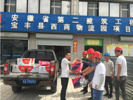 河南寶豐持續(xù)高溫天氣,為了確保建筑工人的身體健康,6月4日,寶豐縣西商農(nóng)產(chǎn)品(冷鏈)物流園有限公司副總經(jīng)理黃盱為在炎炎夏日辛勤工作的項(xiàng)目管理人員以及一線班組送去了絲絲清涼。