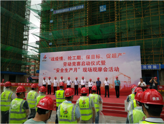 6月18日,安徽二建公司在淮北國(guó)金華府(紫麟苑)項(xiàng)目舉行“戰(zhàn)疫情、搶工期、保目標(biāo)、促超產(chǎn)”勞動(dòng)競(jìng)賽啟動(dòng)儀式及安全生產(chǎn)月系列宣傳教育活動(dòng)。公司領(lǐng)導(dǎo),工會(huì)、黨委工作部、工程管理部、安全管理部、技術(shù)質(zhì)量部部門負(fù)責(zé)人,所屬各單位主要領(lǐng)導(dǎo)、分管安全副經(jīng)理、安全科長(zhǎng),項(xiàng)目經(jīng)理及安管人員共二百余人參加,淮北市監(jiān)管局及建設(shè)單位相關(guān)領(lǐng)導(dǎo)應(yīng)邀參加了活動(dòng)。