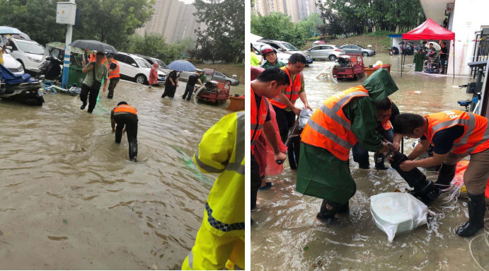 7月18日,合肥遭受77年一遇單日最大降雨。藍天公寓和大興鎮(zhèn)興泰苑出現(xiàn)內(nèi)澇,情況緊急,人民群眾生命財產(chǎn)安全遭受威脅,汛情就是戰(zhàn)斗令,二分公司接到指令,馬上組建30余人的抗洪突擊隊,緊急調(diào)運大功率水泵2臺,配電箱2個,80米電線電纜,300米水管等防汛物資,20分鐘極速趕到抗洪前線?,F(xiàn)場有的架設(shè)水泵、有的鋪設(shè)電纜、有的配合抽水排澇,分工明確、爭分奪秒。經(jīng)過數(shù)小時的緊急救援,至凌晨,災(zāi)情得到有效控制。奮戰(zhàn)了8個小時的志愿者們才撤出前線。