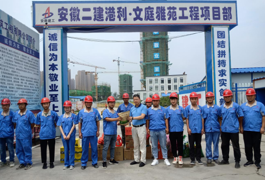 炎炎夏日,酷熱似火。8月12日,安徽二建公司總經(jīng)理陸勤斌,工會(huì)女工主任王俊一行蒞臨淮北國(guó)金華府(紫麟苑)、淮北恒基城安貞大廈、淮北港利文庭雅苑項(xiàng)目開展2020年“送清涼”活動(dòng)。