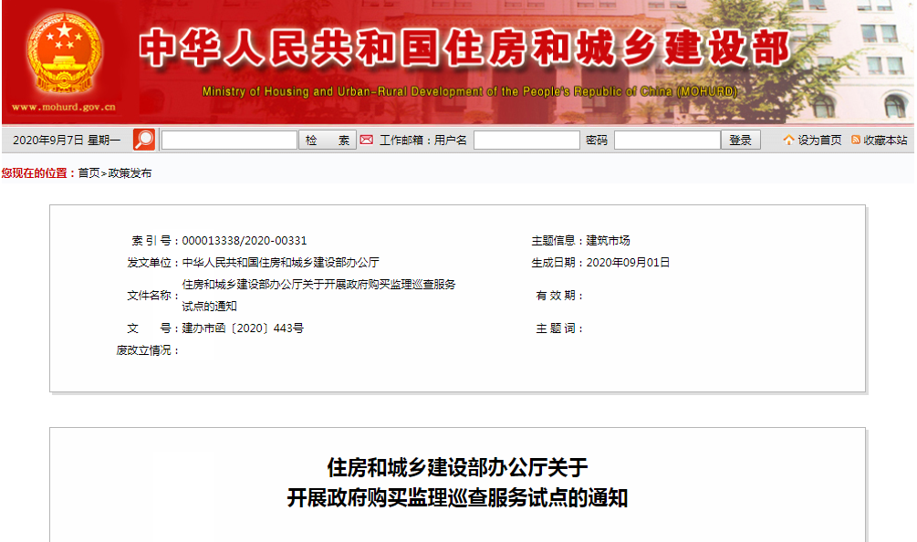 住房和城鄉(xiāng)建設(shè)部開(kāi)展政府購(gòu)買監(jiān)理巡查服務(wù)試點(diǎn)