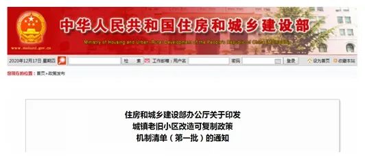 日前,住房和城鄉(xiāng)建設(shè)部印發(fā)城鎮(zhèn)老舊小區(qū)改造可復(fù)制政策機制清單(第一批)。
