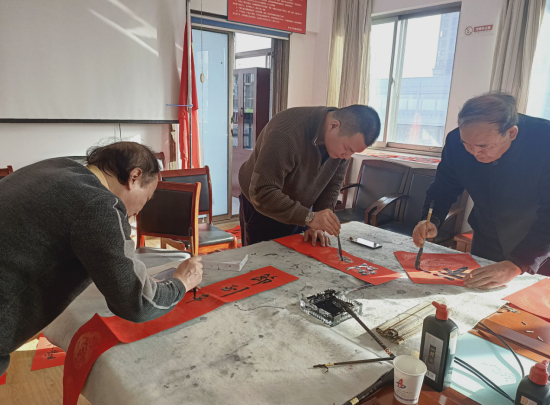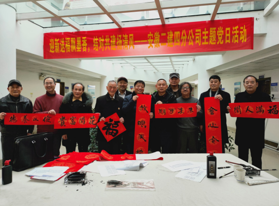 春節(jié)臨近,為營造喜慶、祥和、熱烈的新春氛圍,豐富分公司文化內(nèi)涵,弘揚中華優(yōu)秀傳統(tǒng)文化。1月29日下午,安徽二建四分公司黨支部組織開展“迎新送福飄墨香,結(jié)對共建揚清風”寫春聯(lián)送祝福主題黨日活動。活動邀請了安徽省新四軍歷史研究會淮海委員會會長張振山、副會長楊承愉,安徽省書法家協(xié)會會員牛中民、朱良謀等一行現(xiàn)場揮毫寫春聯(lián),分公司機關(guān)近30余人參加了活動。