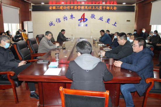 為進(jìn)一步加強(qiáng)干部隊(duì)伍建設(shè),推動(dòng)企業(yè)更好更快發(fā)展。2月4日,安徽二建公司召開中層管理及以上人員干部大會(huì)。公司領(lǐng)導(dǎo)、機(jī)關(guān)部門負(fù)責(zé)人、分公司黨政主要領(lǐng)導(dǎo)、部分職工代表參加,會(huì)議由公司黨委工作部主任施用宏主持。