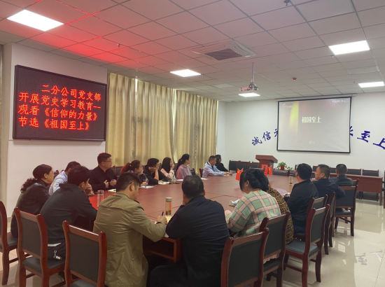 為認真貫徹落實習(xí)近平總書記在中央黨史學(xué)習(xí)教育動員大會上的重要講話精神,進一步深入貫徹公司黨委關(guān)于開展黨史學(xué)習(xí)教育的文件精神。4月16日,二分公司黨支部開展黨史學(xué)習(xí)教育活動,組織黨員和干部職工觀看電影《長征》及紀(jì)錄片《信仰的力量》節(jié)選《祖國至上》。