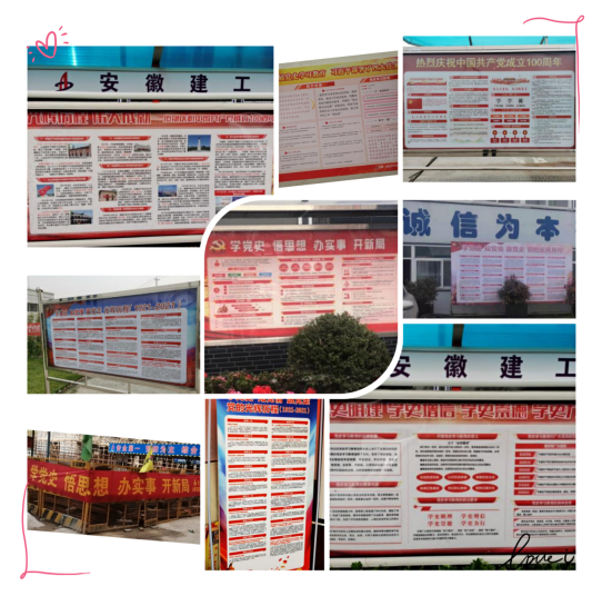 為慶祝中國(guó)共產(chǎn)黨建黨成立100周年,鞏固“不忘初心、牢記使命”主題教育成果,引導(dǎo)廣大職工緊緊圍繞學(xué)懂弄通做實(shí)黨的創(chuàng)新理論,做到學(xué)史明理、學(xué)史增信、學(xué)史崇德、學(xué)史力行,分公司黨支部號(hào)召各項(xiàng)目部開展“制展版 學(xué)黨史”活動(dòng)。