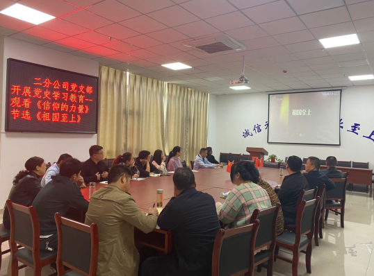為認(rèn)真貫徹落實習(xí)近平總書記在中央黨史學(xué)習(xí)教育動員大會上的重要講話精神,進(jìn)一步深入貫徹公司黨委關(guān)于開展黨史學(xué)習(xí)教育的文件精神。二分公司黨支部開展黨史學(xué)習(xí)教育活動,組織黨員和干部職工觀看電影《長征》及紀(jì)錄片《信仰的力量》節(jié)選《祖國至上》。
