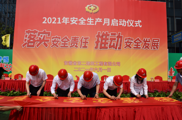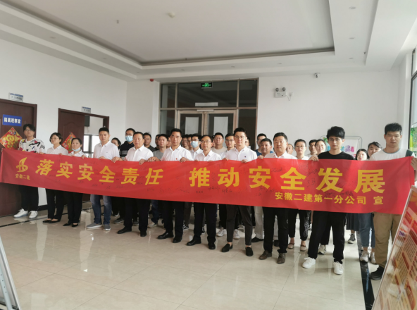 6月1日上午,安徽二建公司在六分公司文一春風里項目舉行“安全生產月”啟動儀式,公司安委會成員,安全管理部、工會全體人員,所屬各單位分管安全、質量副經理、安全科長,在肥項目經理共百余人參加。