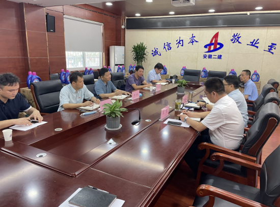 8月3日上午,瑤海區(qū)區(qū)委常委、政法委書記李祥一行蒞臨安徽二建公司調(diào)研指導(dǎo),瑤海區(qū)住建局及轄區(qū)和平路街道相關(guān)領(lǐng)導(dǎo)陪同參加,公司總經(jīng)理李建成、副總經(jīng)理張露出席會議,財務(wù)資產(chǎn)部、市場開發(fā)部等相關(guān)部門列席。