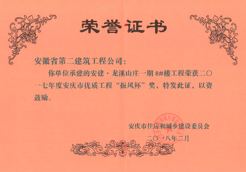 振風杯(龍溪山莊一期8#樓工程)