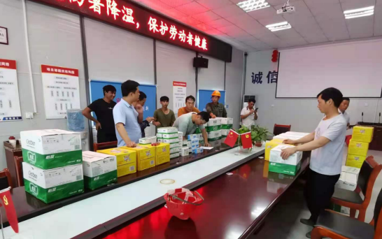 在加緊工期進(jìn)度的同時(shí),項(xiàng)目部還合理安排施工作業(yè)時(shí)間,盡量避開(kāi)高溫作業(yè),及時(shí)發(fā)放防暑降溫藥品以保證安全生產(chǎn)。