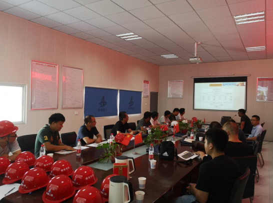 在會(huì)議室,阜陽(yáng)市質(zhì)量監(jiān)督總站專家組、業(yè)主單位、監(jiān)理單位及項(xiàng)目部相關(guān)管理人員,聽(tīng)取文一·云棲天境項(xiàng)目16#、20#、21#住宅樓工程情況匯報(bào)。