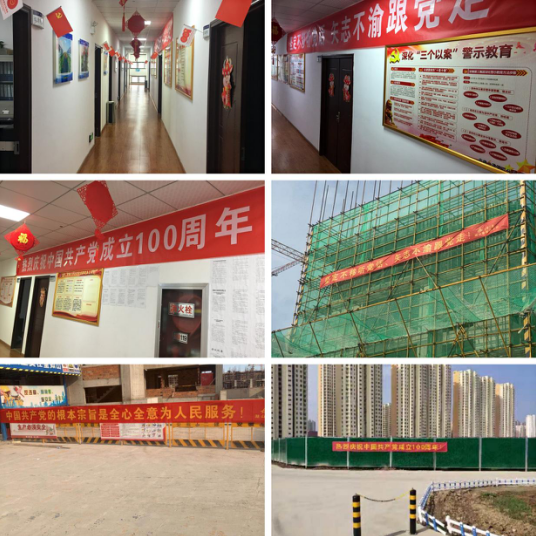鑄就百年輝煌,書寫千秋偉業(yè)。為迎接中國共產(chǎn)黨成立100周年,六分公司機關(guān)及所屬項目部紛紛懸掛張貼了有關(guān)慶祝中國共產(chǎn)黨成立100周年的標(biāo)語,營造濃厚的宣傳氛圍,把黨史學(xué)習(xí)教育進一步推向深入,大力營造“黨的盛典、人民的節(jié)日”濃厚氛圍,充分展示中國共產(chǎn)黨百年光輝歷程、偉大成就和寶貴經(jīng)驗,全面營造濃厚氛圍, 共慶黨的百年華誕,大力唱響共產(chǎn)黨好、社會主義好,改革開放好、偉大祖國好、各族人民好的時代主旋律。