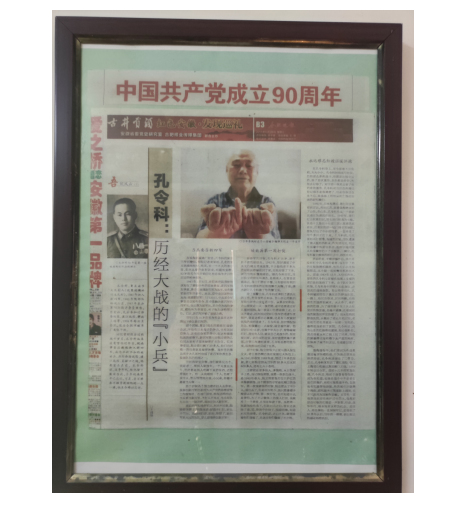 孔令科老人,1926年出生,1941年參軍入伍, 1946年加入中國(guó)共產(chǎn)黨,14歲加入新四軍,戎馬生涯中參加過抗日戰(zhàn)爭(zhēng)和解放戰(zhàn)爭(zhēng),多次立下二等功。在講起那段槍林彈雨、戰(zhàn)火紛飛的革命年代時(shí),他不免有些激動(dòng)。令我們印象最深的是在戰(zhàn)爭(zhēng)中有五顆手榴彈滾到了他的腳下,幸運(yùn)的是只有一顆爆炸了,導(dǎo)致右腿右臂受重傷,多處留有彈片。如今95歲高齡的孔老,身體硬朗、思維清晰,始終保持著每天讀書看報(bào)的好習(xí)慣,在靜享慢讀中,沉淀出生活的安靜與從容。如今的和平時(shí)代是無數(shù)革命先烈用鮮血和生命換來的,沒有他們?cè)⊙獖^戰(zhàn),何來祖國(guó)今日繁榮昌盛?臨走前,滿頭銀發(fā)的孔老不斷重復(fù)著:“你們生在好時(shí)代,大家都年輕,一定要多讀書多學(xué)習(xí)”。