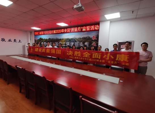 9月3日下午,為積極響應(yīng)國家市場監(jiān)管總局、國務(wù)院國資委、住建部、交通部等16個部門《關(guān)于開展2020年全國“質(zhì)量月”活動的通知》精神,結(jié)合公司“建設(shè)質(zhì)量強國 決勝全面小康”活動主題。六分公司開展了2020年“質(zhì)量月”宣誓簽名活動,技術(shù)質(zhì)量科負責人帶領(lǐng)大家進行宣誓,之后在橫幅簽名。