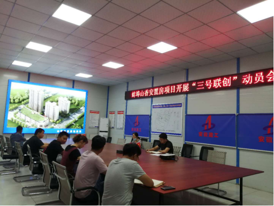 6月24日,一分公司黨支部書記倪海霞帶領(lǐng)機關(guān)人員赴蚌埠山香安置房項目,召開“三號聯(lián)創(chuàng)”動員會。