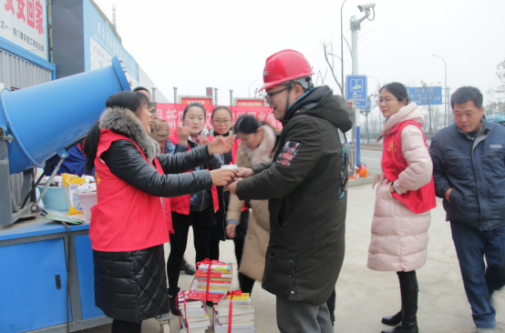 活動現(xiàn)場,項目部成員與志愿者們在錦門·繁華里工地門口支起愛心粥鋪,把一碗碗香暖四溢的臘八粥送到每一位民工手上,讓大家能夠在寒冷的冬季感受到社會的溫暖,體會到了社會各界對民工朋友們的關(guān)愛,送粥的同時,志愿者們還給民工朋友們送上各類書籍,讓民工朋友們也享受到閱讀的樂趣。