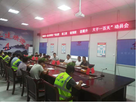 2019年9月5日,為積極響應(yīng)公司“大干100天”勞動(dòng)競(jìng)賽活動(dòng)號(hào)召,激發(fā)項(xiàng)目參建隊(duì)伍的積極性和能動(dòng)性,進(jìn)一步推進(jìn)生產(chǎn)進(jìn)度,四分公司臨泉一品公館項(xiàng)目部及時(shí)召開動(dòng)員大會(huì),以“搶進(jìn)度、保工期、穩(wěn)預(yù)期、促提升,大干一百天”為口號(hào),競(jìng)賽活動(dòng)全面拉開序幕。