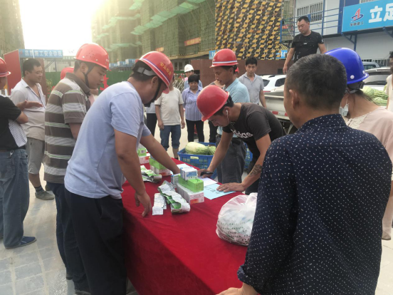 為貫徹落實好公司2019年夏日“送清涼”活動,傳遞公司及項目部對一線工人的關(guān)愛,7月15日下午,臨泉匯鑫·悅瀾灣一期B標(biāo)段項目部開展“送清涼”活動,在項目管理人員的組織下,將購置的西瓜、綠豆、藿香正氣液、仁丹等防暑用品全部發(fā)放到現(xiàn)場一線工人的手中,表達(dá)了公司和項目部關(guān)心、體恤一線工人的濃濃情意,也給炎炎夏日帶來一絲愜意、一縷清涼!