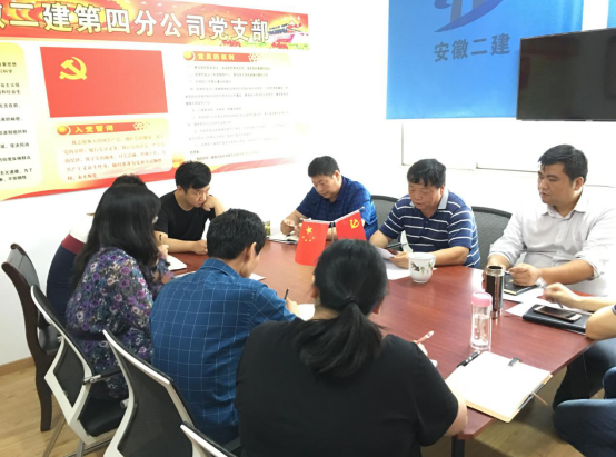 2019年5月27日上午,四分公司黨支部開展了“黨員活動(dòng)日”活動(dòng),集中學(xué)習(xí)了建工控股黨委關(guān)于持續(xù)深入扎實(shí)學(xué)好用好黨章的文件,并組織黨員對(duì)照黨章查擺問題,機(jī)關(guān)和合肥項(xiàng)目部黨員參加學(xué)習(xí),黨支部書記董建民主持活動(dòng)。