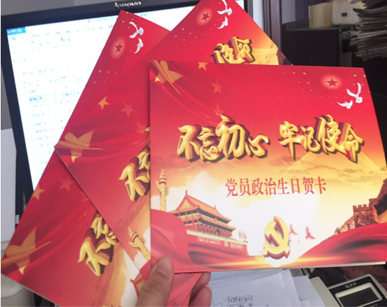 支部書記倪海霞為在三季度入黨的三位黨員統(tǒng)一過政治生日并發(fā)放生日賀卡。通過重溫入黨誓詞、重憶入黨志愿,進(jìn)一步提高分公司黨員隊伍整體素質(zhì),讓廣大黨員通過常思“當(dāng)初入黨為什么、如今為黨做什么、今后為黨留什么”明確黨員使命,增強(qiáng)黨性意識。