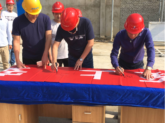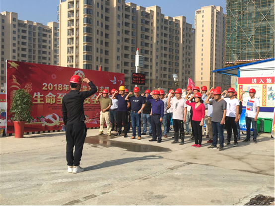 上午8點,項目經(jīng)理張尚禮傳達了公司關于開展安全生產(chǎn)月主題及宣誓活動的精神,對活動提出了要求。隨后專職安全員劉振中帶領項目全體員工莊嚴地舉起右手鄭重宣誓,并在“生命至上,安全發(fā)展”橫幅上簽字。