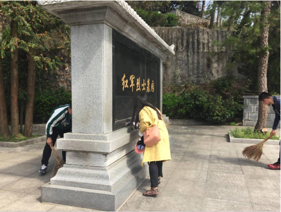 參觀結(jié)束后,青年團(tuán)員們抑制住激動(dòng)的心情,組織起墓園清潔活動(dòng)。此時(shí)正值雨季,樹葉經(jīng)風(fēng)雨吹打,稀稀落落覆滿了陵園,大家合理分工,有序的對(duì)紅軍烈士墓園進(jìn)行了清掃。大伙們清掃的動(dòng)作干練而又小心,生怕打擾了紅軍烈士的安眠,擦拭的地方干凈而又到位,生怕浮塵暗淡了革命烈士的光榮。