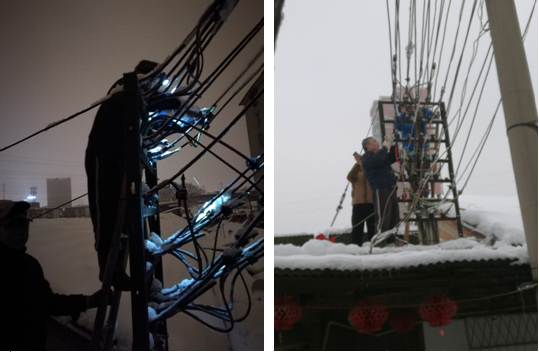 1月4日、5日,合肥地區(qū)普降暴雪,致使公司大院、分公司各生活基地多處老、舊平房100多戶遭受暴雪災(zāi)襲擊,造成樹枝斷裂壓在房頂上,危及職工住戶生命安全。路口路段出現(xiàn)大面積積雪堆積,交通堵塞,影響居民正常生活出行。面對緊急災(zāi)情,后勤綜合服務(wù)部一是立即成立了除雪保暢、維修應(yīng)急處置小分隊,合理分工,各負(fù)其責(zé)。分赴公司大院、二、四分公司生活基地,冒著雨雪搶修高壓電網(wǎng)短路、水管爆裂等災(zāi)情;二是安排人員張?zhí)┭┨鞖庾龊美吓f房屋、人身安全緊急通知的告示,防患于未然,安全為天;三是與安裝分公司協(xié)助,抽調(diào)專業(yè)電工人員幫助消除電網(wǎng)隱患,確保住戶用電安全;四是針對公司大院31棟北側(cè)一棵高13米,直徑0.7米的大樹被雪壓倒塌,造成一墻之隔的安紡2村住宅樓第二單元部分損壞和居住安全隱患,后勤及時聯(lián)系專業(yè)樹木砍伐隊伍,對樹木進(jìn)行分段切割,消除了倒塌樹木對住戶造成的安全隱患,確保了住戶的人身和財產(chǎn)安全。